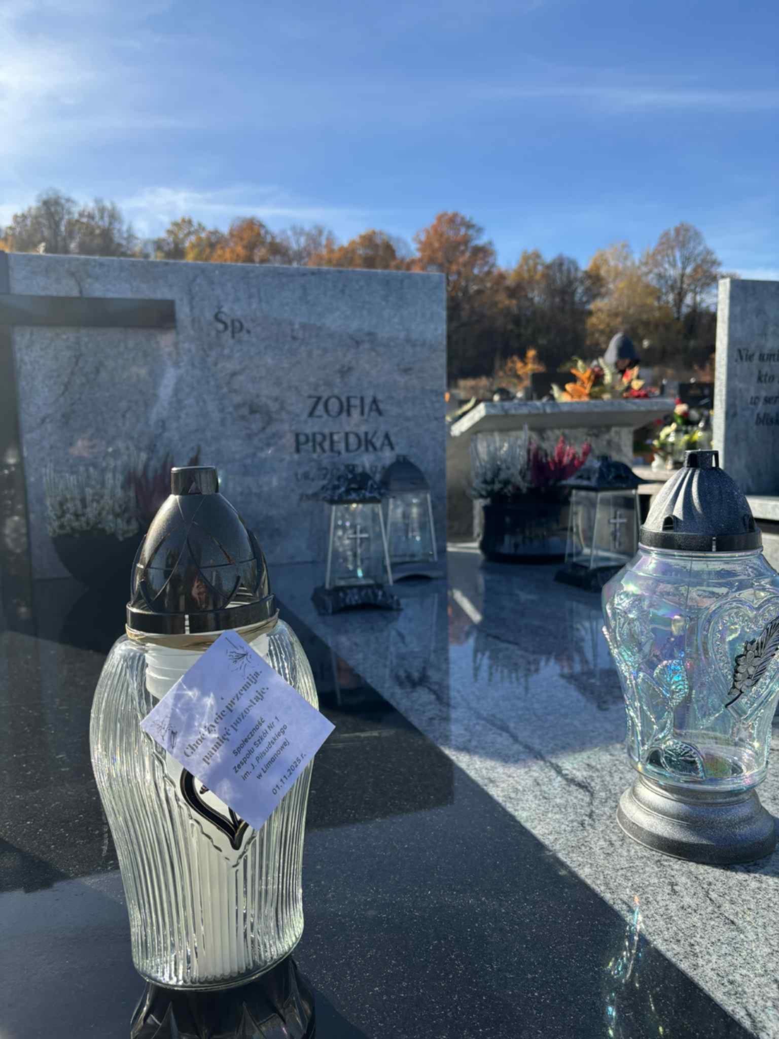 W piątek, 31.10.2025 roku, przedstawiciele Samorządu Uczniowskiego udali się na lokalne cmentarze (w Limanowej, w Tymbarku oraz na Jabłońcu), aby uczcić pamięć tych, którzy odeszli. Młodzież miała również okazję zapoznać się z historią regionu oraz symboliką Dnia Wszystkich Świętych. Uczniowie, wraz z opiekunem p. Andrzejem Piętoniem, zapalili znicze, oddali hołd poległym oraz zmarłym mieszkańcom. Wyjście było ważną lekcją szacunku dla miejsca wiecznego spoczynku.